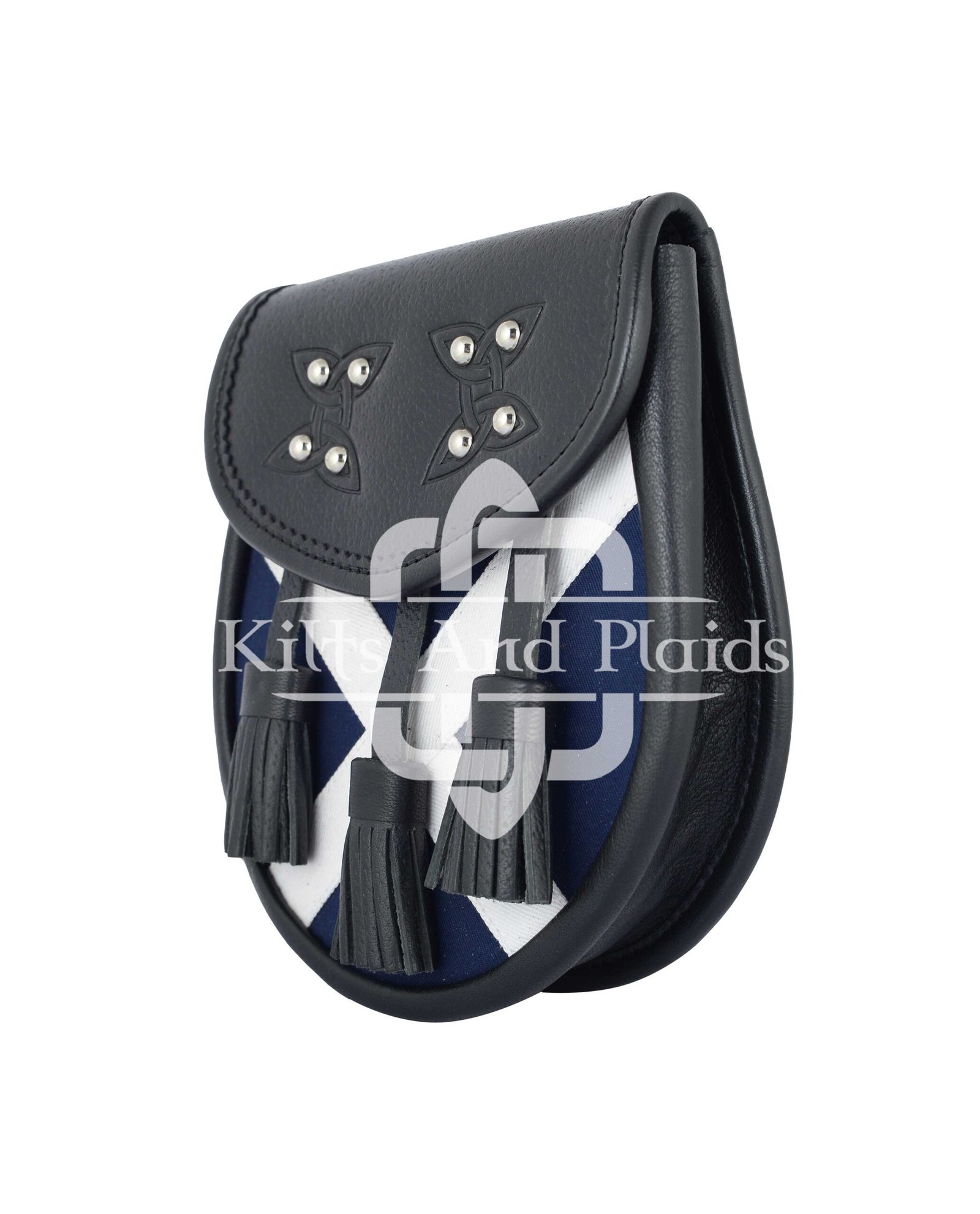 Scottish Semi Dress Leather Scotland Flag Sporran