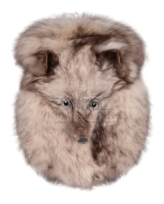 The front showcases a real full silver fox mask, complete with natural fur and distinctive facial features. Its striking silver, grey, and black tones create a regal and wild aesthetic that captures attention instantly. Each mask is unique, offering a one-of-a-kind look with no two pieces exactly alike.