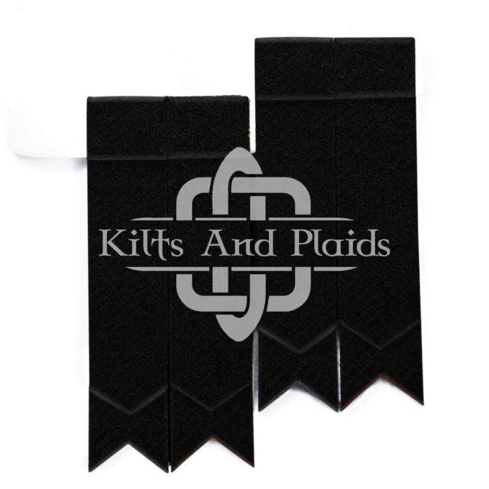 Made from premium woven fabric, these flashes deliver both durability and comfort. The deep black tone creates a striking contrast against kilt hose, ensuring your outfit looks polished and complete. Each pair includes an adjustable elastic garter and a secure hook-and-loop fastening, allowing for a snug, reliable fit that stays in place as you move with confidence.
