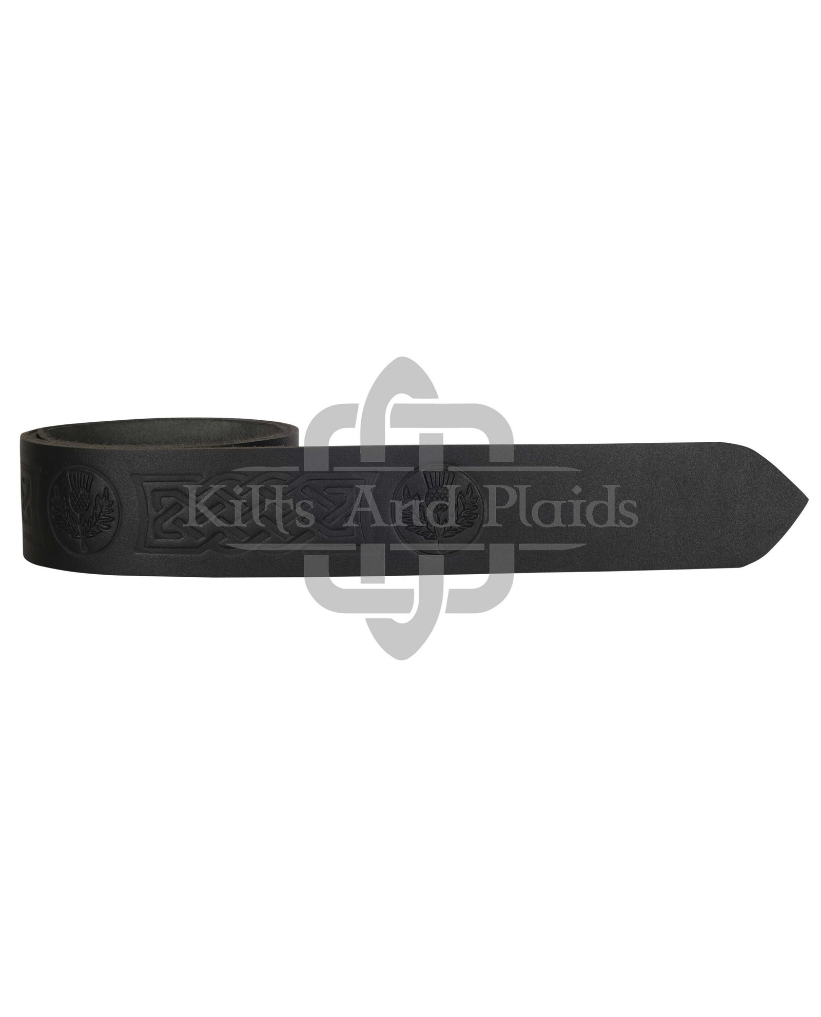 Celebrate your Scottish heritage with the Thistle Embossed Leather Kilt Belt. Crafted from premium black leather, this belt features a detailed thistle design, symbolizing Scotland’s strength, resilience, and pride. It’s a perfect way to add meaning and style to your Highland outfit.
