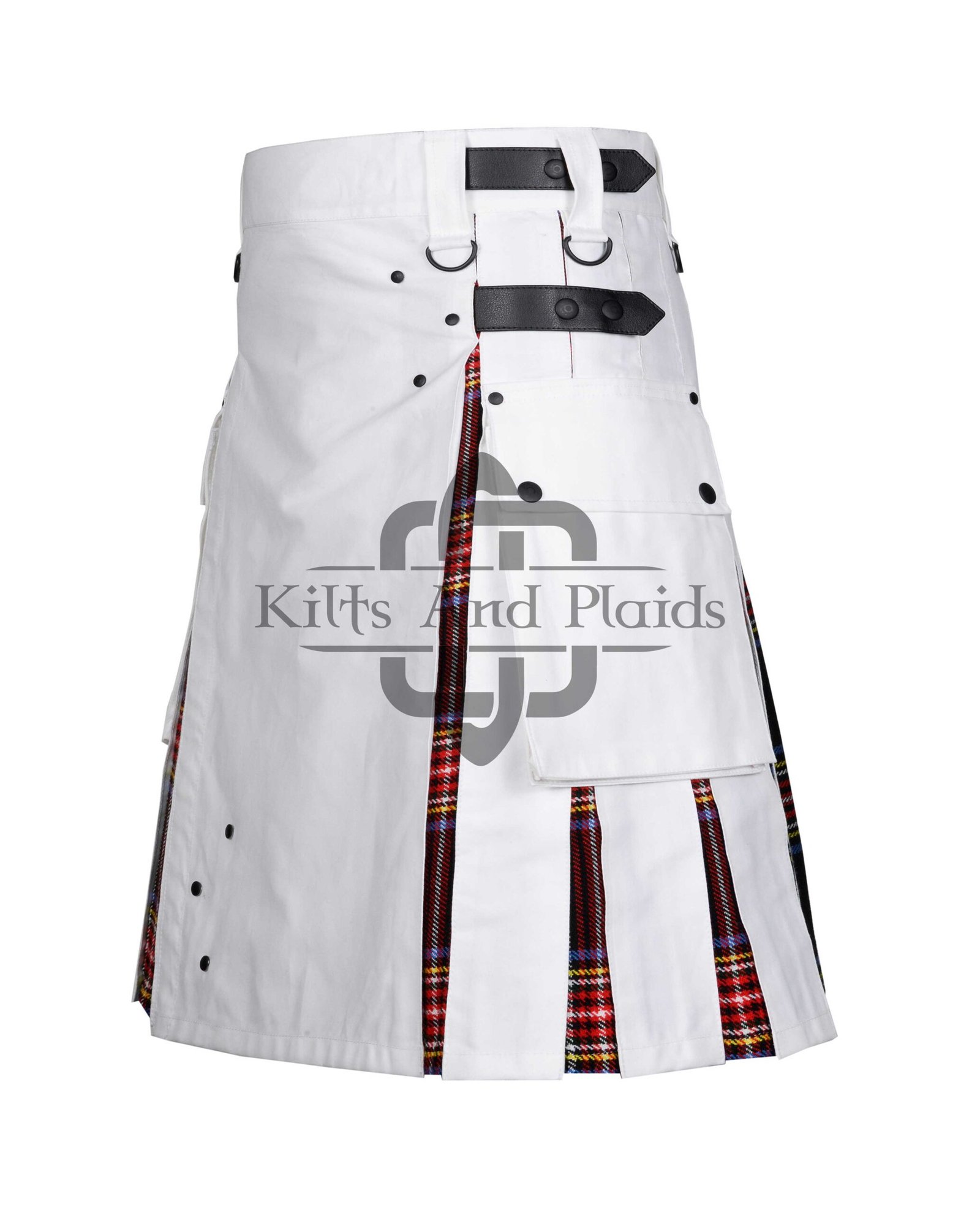 White Cotton Stewart Black Tartan Hybrid Kilt
